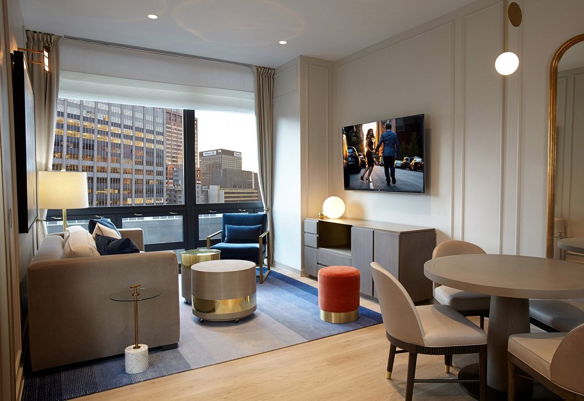 Our studios and suites are located on floors 44–46 of the New York Hilton Midtown in the center of Manhattan. Central Park, Times Square, and Carnegie Hall are all within a half-mile walk. Park views, in-room spa facilities, a fitness facility, and an owners’ lounge are just a few of the amenities available. Private check-in on the 44th level and charge privileges are among the perks. From the morning through the evening, Herb n’ Kitchen offers a breakfast buffet, to-go snacks, brick-oven pizzas, and room delivery. The lobby lounge serves light meals, cocktails, and a wine list, while Bridges Bar specializes in Martinis. Charge privileges at the Hilton Midtown restaurants are included in your stay. This remarkable facility constantly offers a way to plug in or let go, from a 24-hour Fitness Center to a fully equipped Business Center and soothing lounge, all in characteristic New York style.