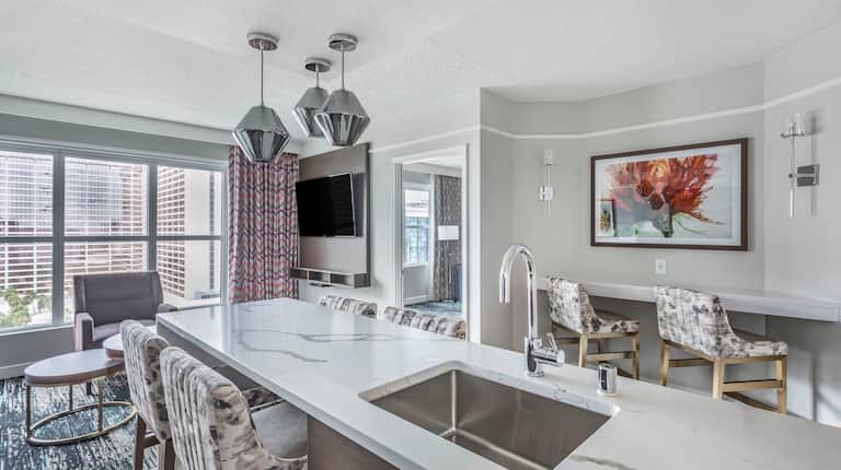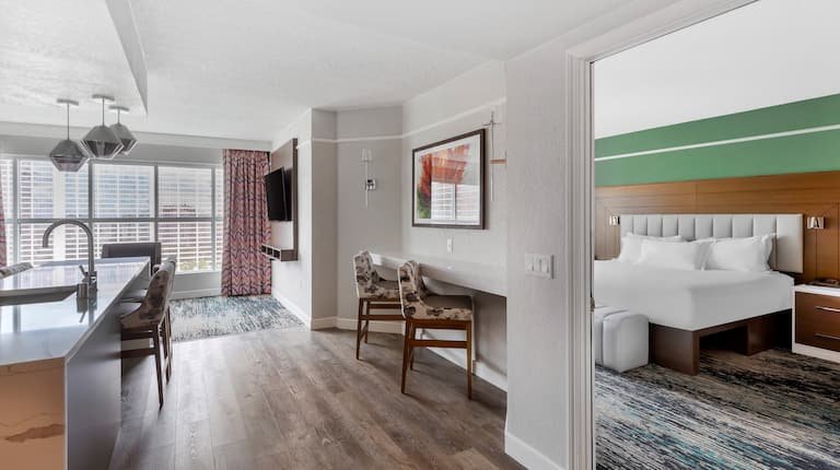 Accommodations at the Hilton Grand Vacations Club at the Flamingo epitomize luxury and style. Spacious suites and villas are thoughtfully appointed with contemporary furnishings, plush bedding, and all the modern amenities needed for a comfortable stay. Whether you’re enjoying a romantic getaway for two or traveling with the whole family, there’s a perfect option to suit your needs.