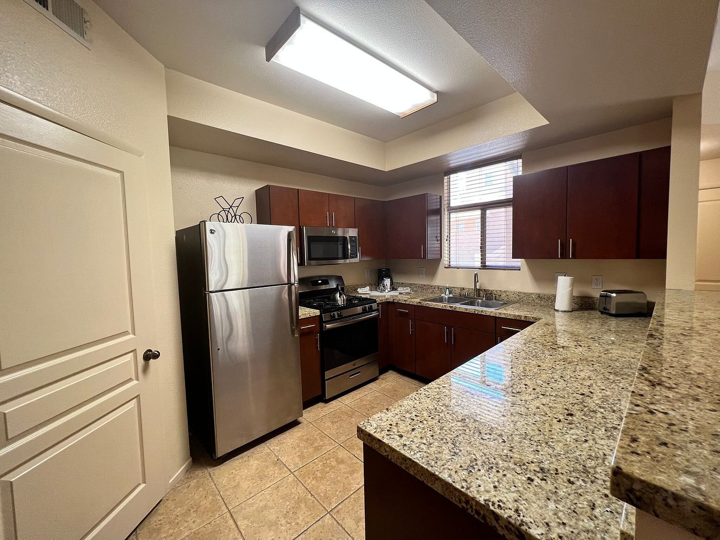 The Cliffs at Peace Canyon is a relaxing desert retreat located just minutes away from the excitement of the Las Vegas Strip, yet far enough to offer peace, quiet, and stunning mountain views. Nestled in the tranquil community of Summerlin, this resort provides a perfect blend of comfort, convenience, and seclusion. Guests are welcomed into spacious one- and two-bedroom villas, each thoughtfully appointed with full kitchens, separate living and dining areas, private patios or balconies, cozy fireplaces, and in-unit washers and dryers. Whether you’re planning a short weekend stay or an extended getaway, the accommodations are designed to make you feel right at home.
